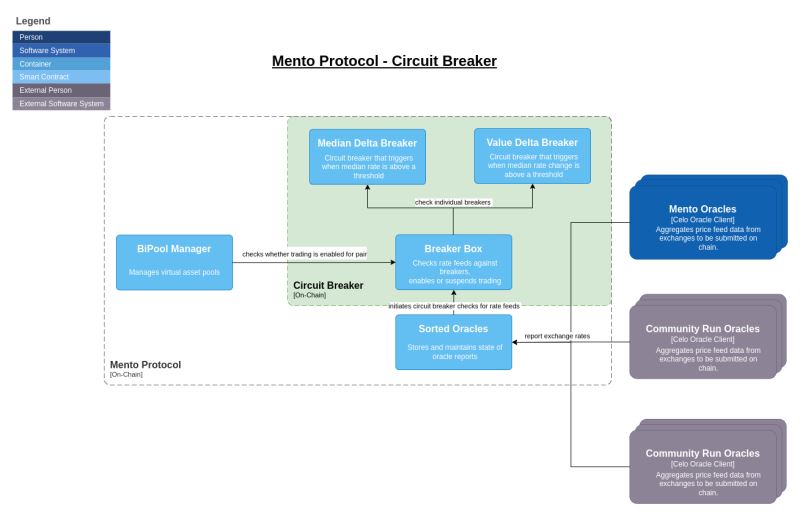 传统金融中,断路器是一种保护机制,用于在异常事件(如剧烈价格波动或流动性问题)期间暂时暂停或限制交易活动。Mento 使用链下预言机客户端为不同货币(如 USD、BRL 和 EUR)提供汇率。因此,如果发生任何与此预定义机制相关的问题,Mento 将暂停交易。