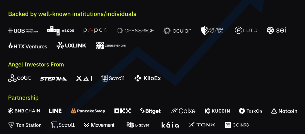 该项目由区块链和 DeFi 领域经验丰富的团队领导,并得到 UOB Ventures、ABCDE Labs、Brooker Group、Signum CAPItal 和 Paper Ventures 等顶级投资者的支持。