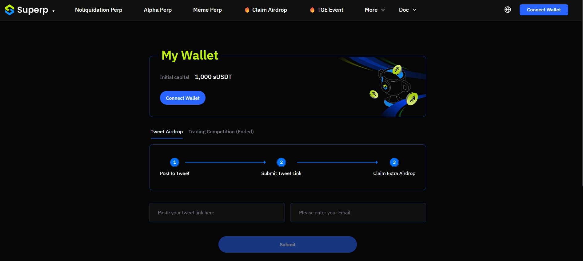 Superp 成立于 2023 年,通过 TRS(Meme Perps)、PSC(NoLiquidation Perp)、Alpha Perps 等产品迅速确立了在去中心化金融(DeFi)领域的地位。