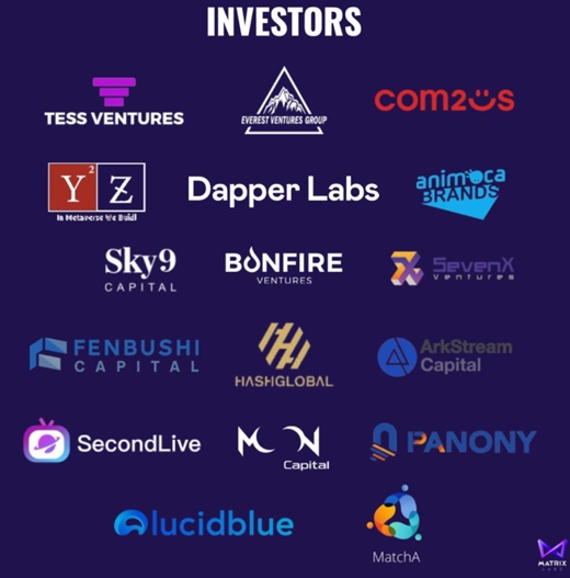 World3 的前身是开发在以太坊链上的元宇宙项目 Matrix World,该项目在启动之初便吸引了众多个人和机构投资者的关注。2022 年 2 月,Matrix World 以 5000 万美元估值完成 550 万美元天使轮融资,由 Tess Ventures、Everest Ventures Group、Com2Us 和 Y2Z Ventures 领投,其他投资机构包括 Sky9 CAPItal、Dapper Labs、Animoca Brands、Bonfire Ventures、Matcha、SECondLive、Hash Global、LucidBlue Ventures 和 PANONY 等。