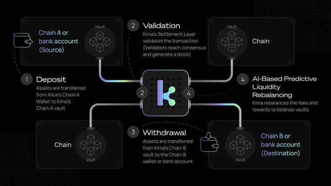 该协议专注于跨生态系统的结算和支付,费用在链上结算。$KIMA 将作为网络/安全层的计费和激励工具。生态系统的扩展(支付网关、钱包内跨链、商家结账)将直接推动费用和质押需求。