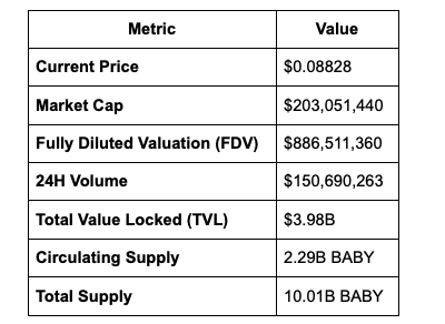 自2025年4月首次上市以来,BABY显示出高波动性——先涨至0.166美元,然后回调至目前约0.088美元的水平。价格走势反映了投机热情以及短期获利回吐。