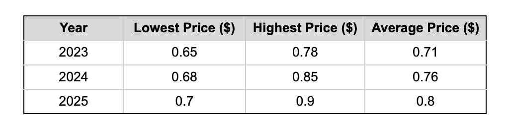 根据 CoinMarketCap 和 Coingecko 等来源的当前数据和技术分析,行业专家预测 NIL 在 2025 年可能会出现显着的价格波动。虽然由于市场动态,精确的预测仍然具有挑战性,但许多分析师预计平均交易价格范围在 0.70 美元到 0.90 美元 之间。在有利的市场条件下(在交易量增加和看涨情绪的支持下),NIL 可能会更接近其历史高点。