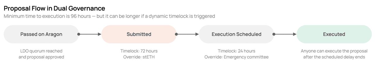 治理过程透过领先的DAO 框架Aragon 进行,并由Easy Track(一种用于验证者效能调整等常规变更的提案快速追踪系统)提供支援。这种结合确保了决策的透明度和效率。