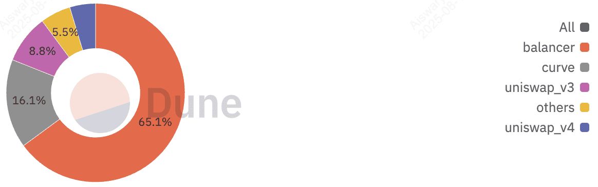 流动性储备(配对代币价值)| 来源:Dune Analytics