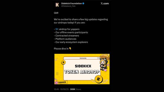 Sidekick Foundation 为社群不同群体举办多场空投活动,包括Yappers 使用者、实体与线上活动忠实参与者、签约实况主、平台观众与Telegram 早期社群成员。