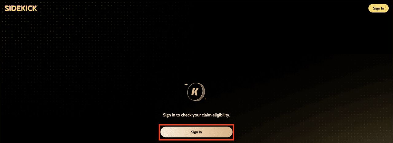 Genesis 空投是Sidekick 为已验证社群成员提供的官方代币发放。如果您拥有Sidekick 帐号,已连结Twitter 帐户,并符合最低活跃标准,您即可领取$K 代币。操作如下: