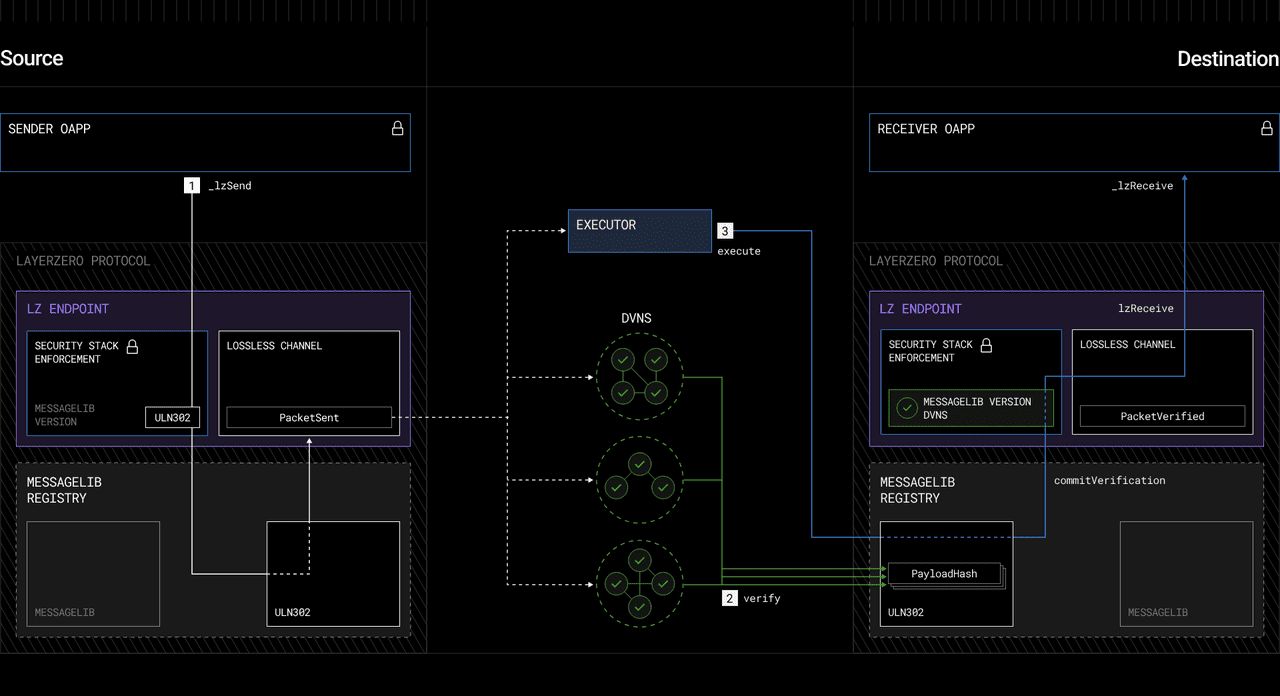 3. 去中心化验证网路(DVNs) – 在V2 中,多个独立验证者取代单一预言机模型,而执行者(Executors) 负责执行,实现更高的去中心化和可自订的安全性。