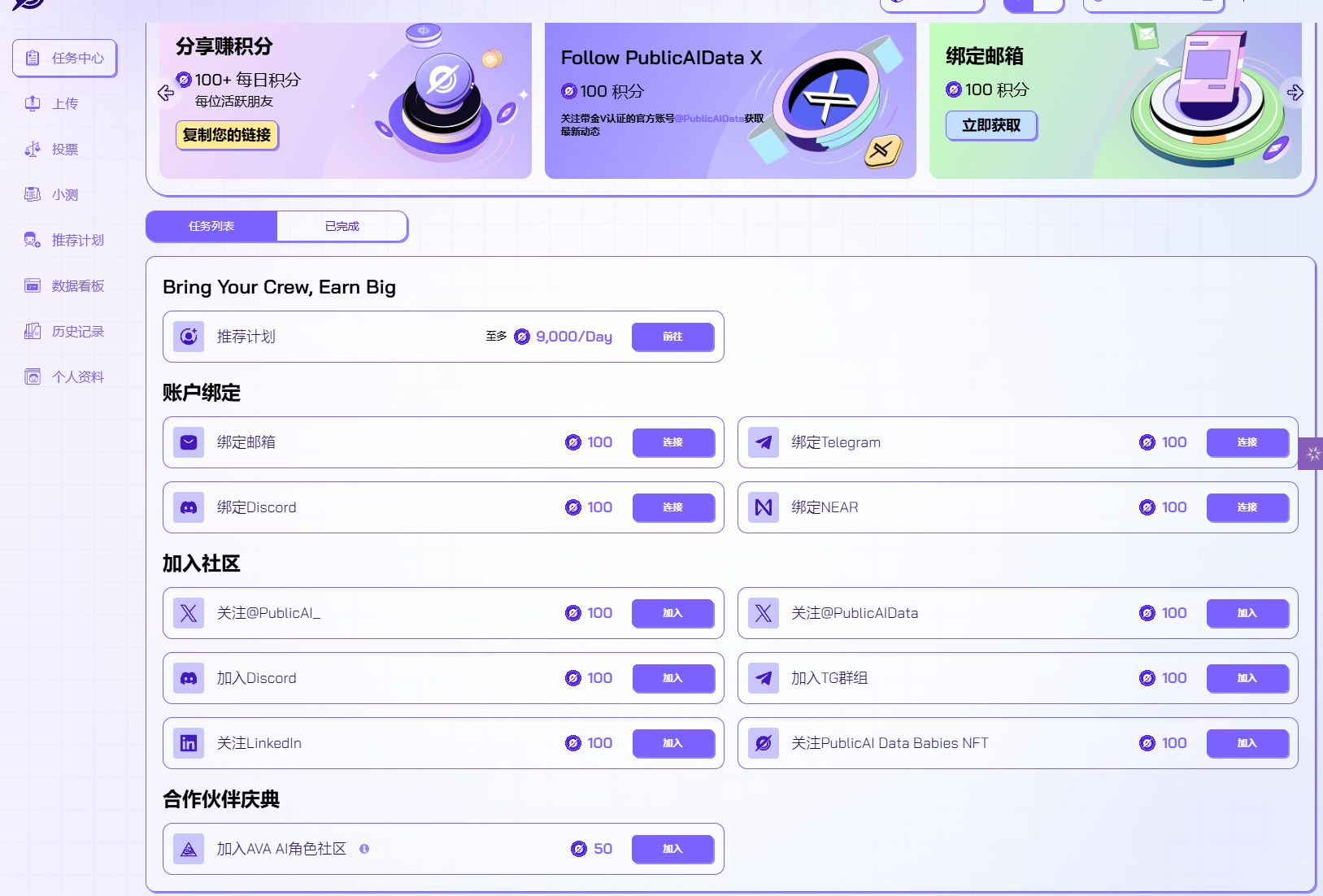 PublicAI任务平台主要分为:小测——上传——投票;三个是连续的,他们的关系是: