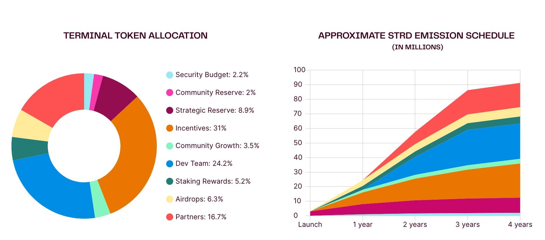STRD是Stride的原生代币,2022年12月上线主网,总供应量为1亿枚。