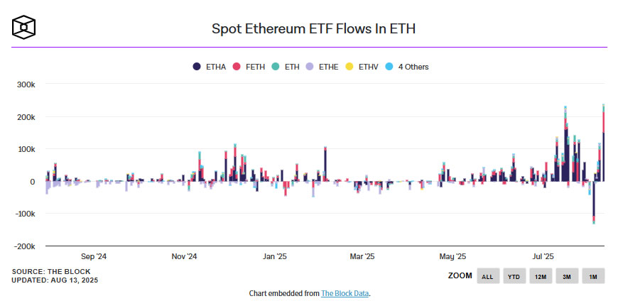 目前,市场上知名的分析师和投资公司认为,ETH 有上涨的势头,有望突破 6,000 美元。这一判断基于一个坚实的基本面:ETH 现货 ETF 已连续 13 周实现持续净流入,eth ETF 的总市值已达 1,380 亿美元左右。