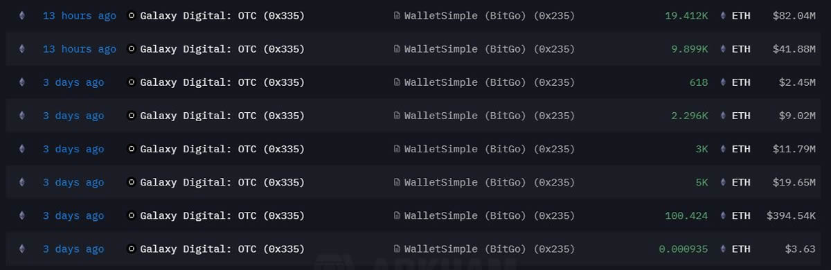 一家神秘机构在过去一周内累计持有 221,166 枚 ETH,价值约 9.466 亿美元。追踪这些资金,我们发现一些知名机构,例如 FalconX 和 Galaxy Digital 等主经纪商。他们的资产目前由 BitGo 托管,尚未有任何出售,这表明他们长期持有坚定的信念。