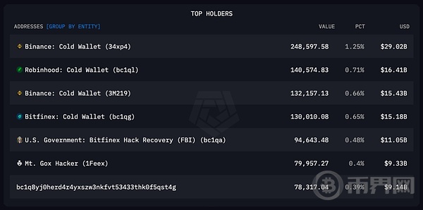 通过 Arkham,我们可以看到哪些具体钱包持有最多的比特币: