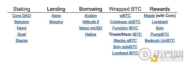 以下列表是我们对BTCfi不同参与者的初步梳理: