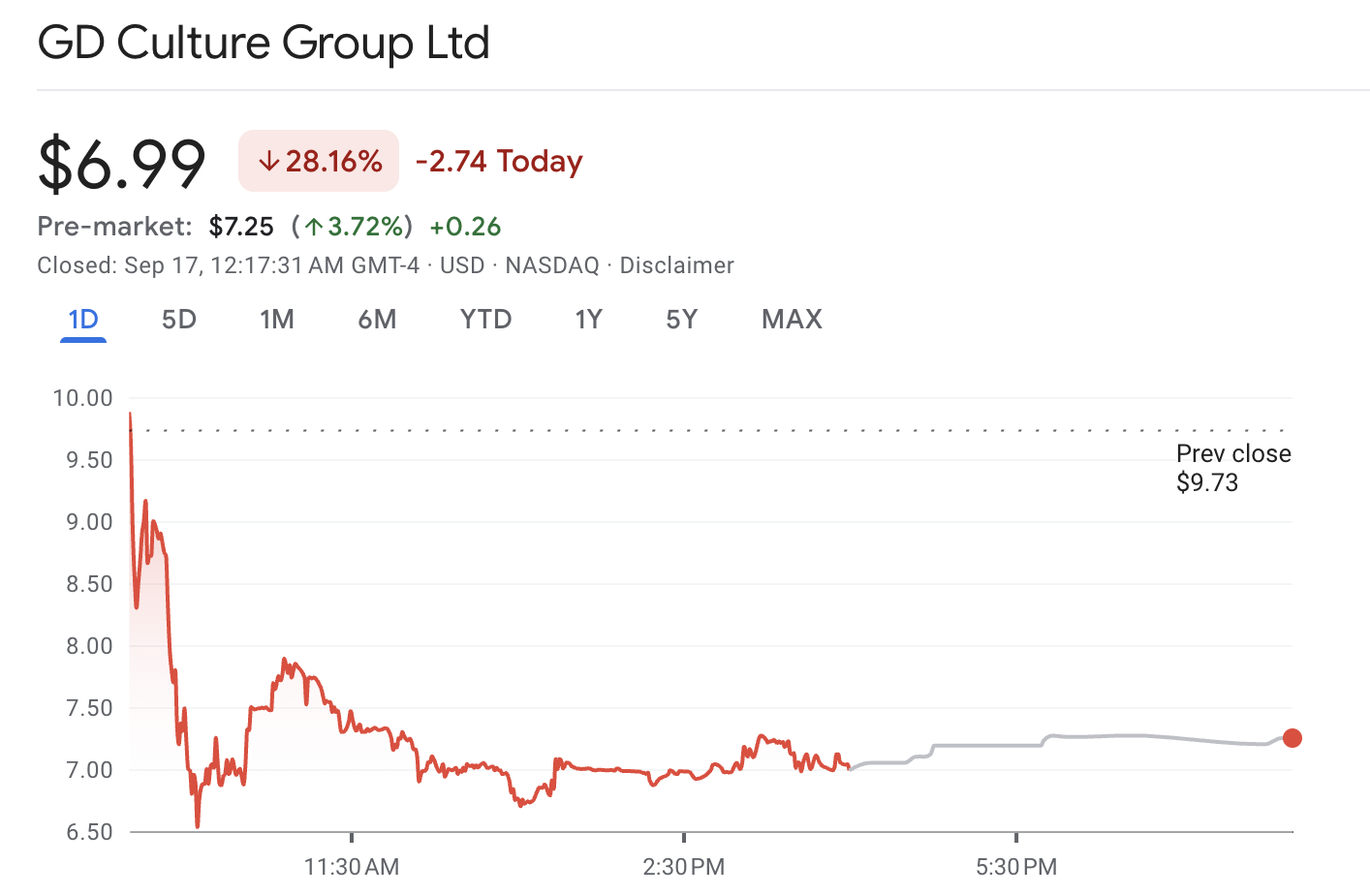 尽管如此,该公司的最新举措还是遭到了投资者的质疑。谷歌财经数据显示,GDC 股价收于 6.99 美元,下跌 28%。盘前交易中,股价小幅回升 3.72%。