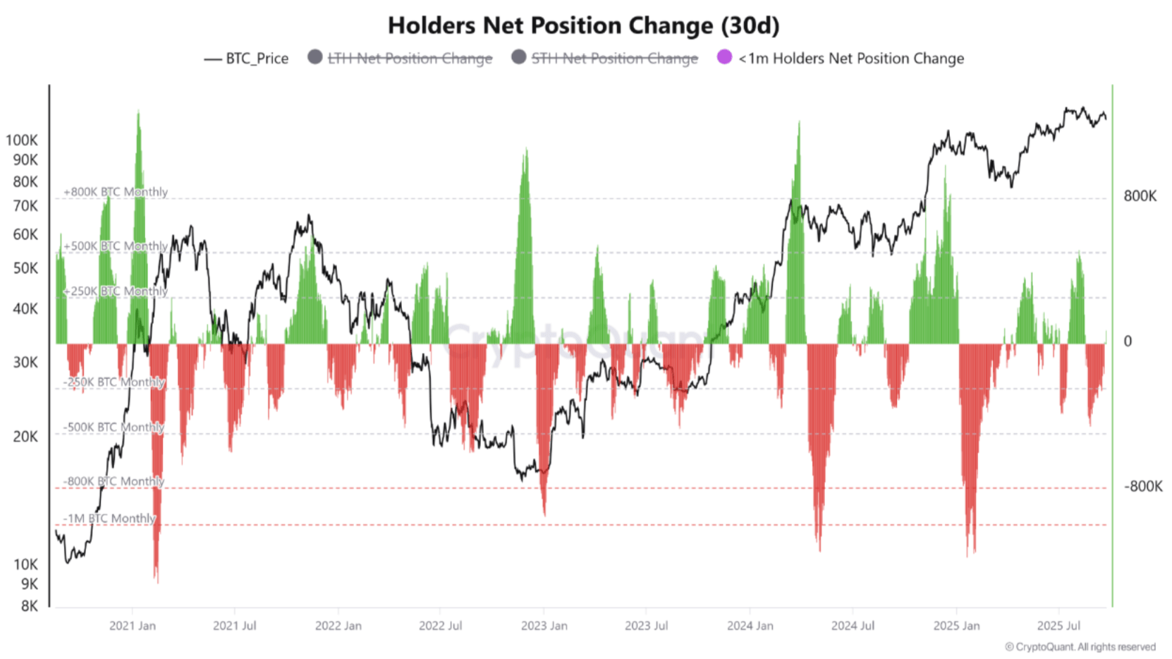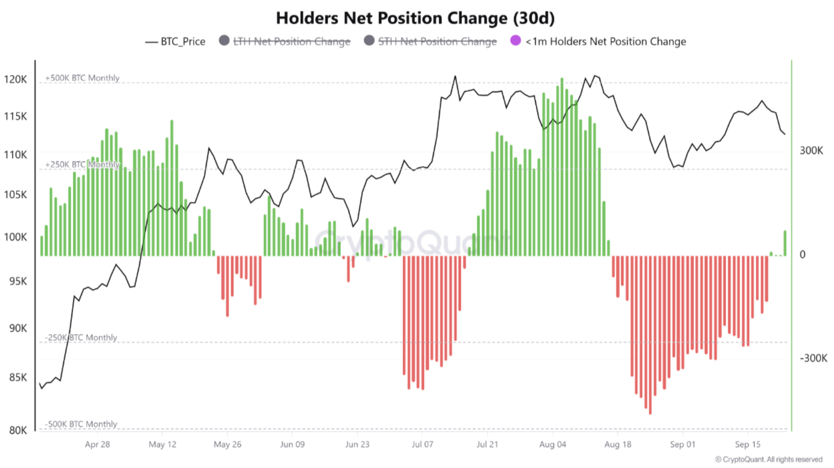 这位 CryptoQuant 的贡献者补充道,这种增持并不局限于最新的群体。除了持有时间不到一个月的群体外,短期持有者(STH)——持有 BTC 时间不到六个月的投资者——也在增持。