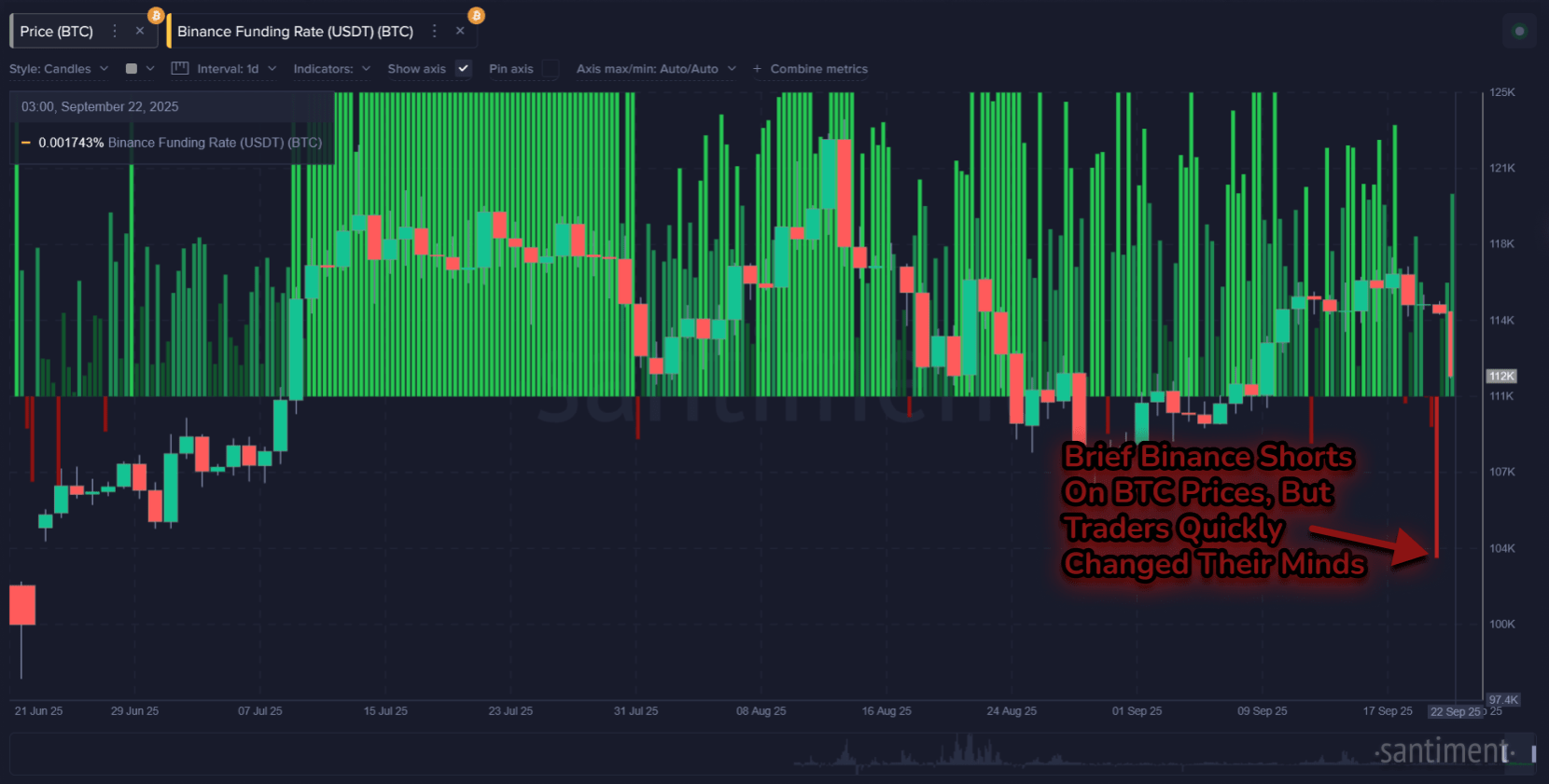 在比特币价格最新一轮暴跌之前,该指标一度大幅转红,表明币安的空头仓位占据主导地位。然而,在比特币价格暴跌之后,随着该指标重新变为绿色,交易员们改变了策略。