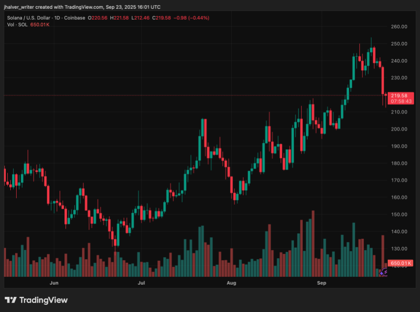 SOL 的价格在日线图上呈下跌趋势。资料来源:Tradingview 上的 SOLUSD 图表