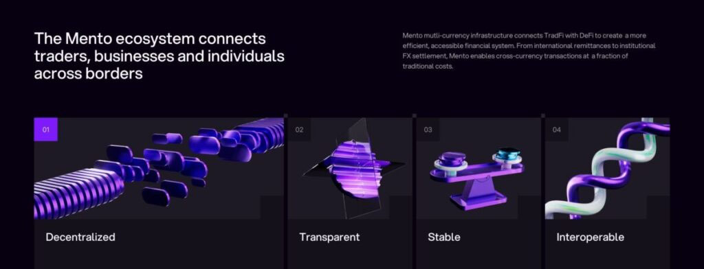- 核心产品:Mento Asset Exchange(vAMM),提供实时 FX 交易、低滑点、高安全与 24/7 市场访问。
