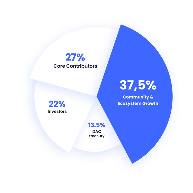 剩余的37.5%用于社区与生态系统发展,这部分代币的9200万枚(占总供应量的9.2%)会在代币初次发行时解锁,3000万枚会以Azuro Score空投的形式发放给社区,这部分空投代币会在6个月内线性释放;余下的2.53亿枚(占总供应量的25.3%)空投有6个月锁定期,并在发行后的42个月内线性释放。用于社区与生态系统发展的这部分代币将会用于未来推出的Azuro Waves激励计划、DEX流动性激励、生态系统基金以及基础设施计划等等。