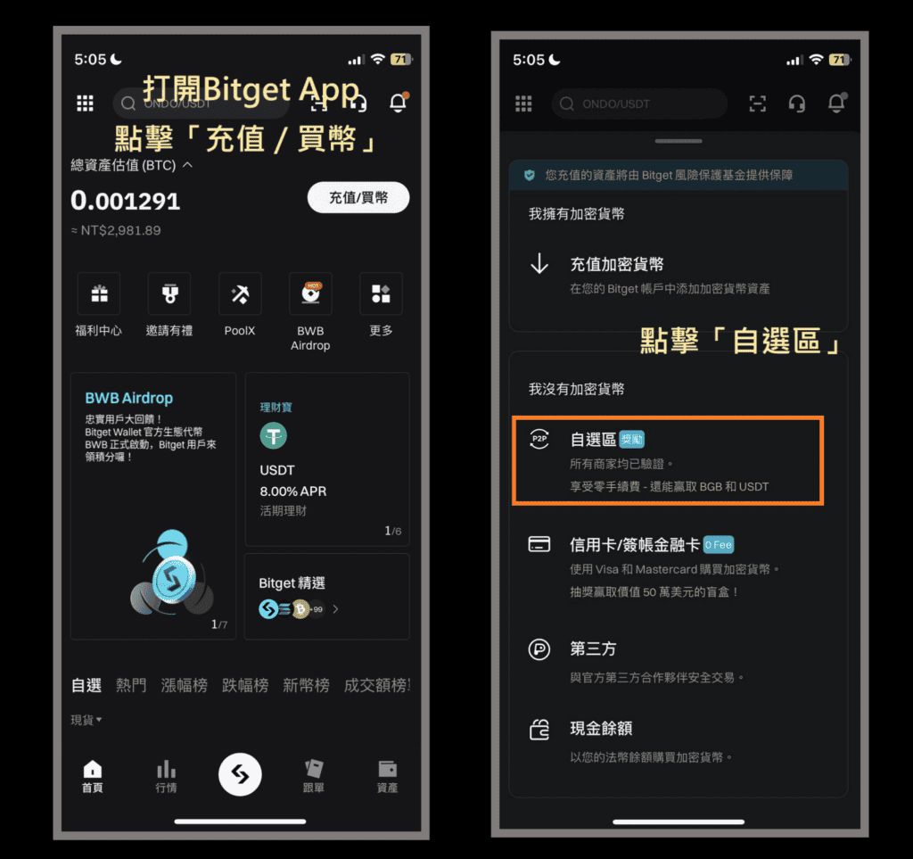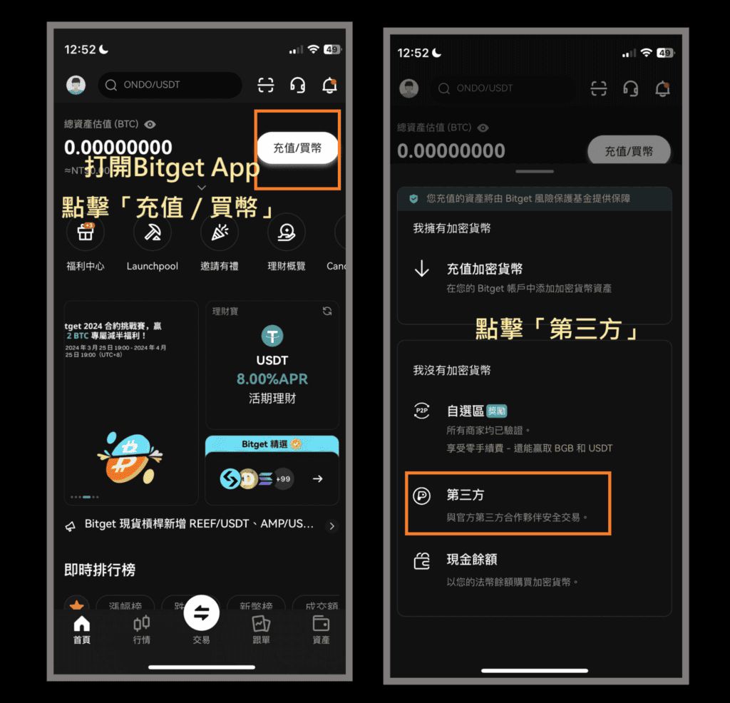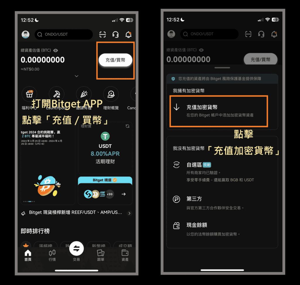 Bitget交易所在中国台湾没有据点,所以并可以像MAX、币托交易所一样直接透过台币入金。