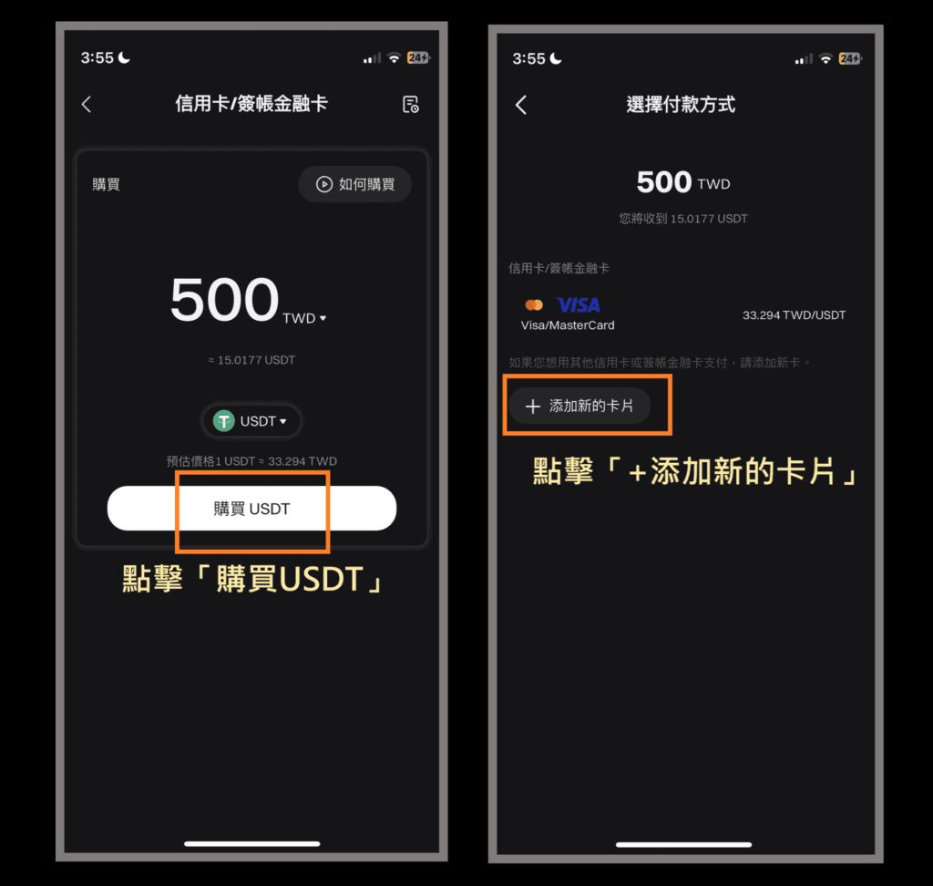 1. 法币充值管道一:信用卡刷卡入金 —— 适合除刷卡手续费的族群