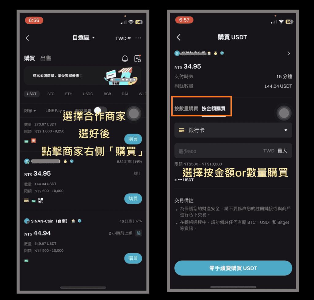 除了挑选合作的建议,基本上Bitget上的卖家都有经过验证的,大家可以挑选有提供自己方便支付的卖家,通常币价越划算,单笔输入金额。