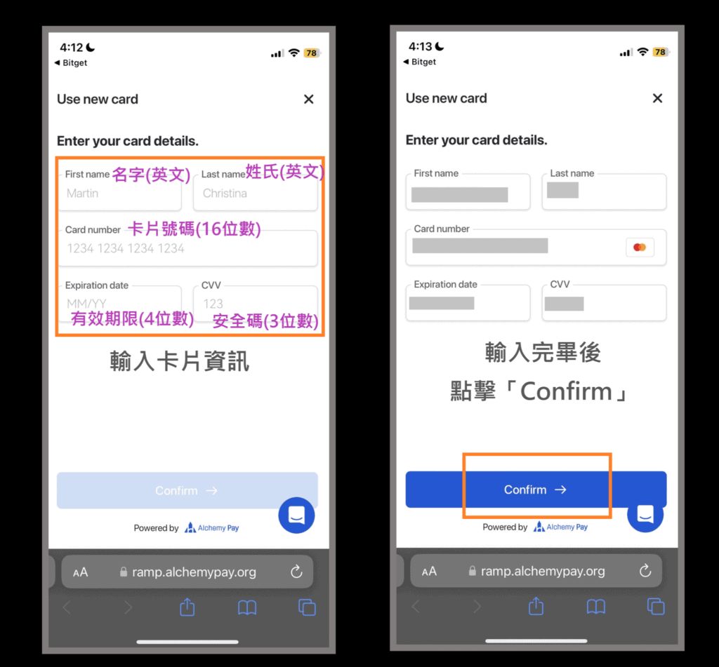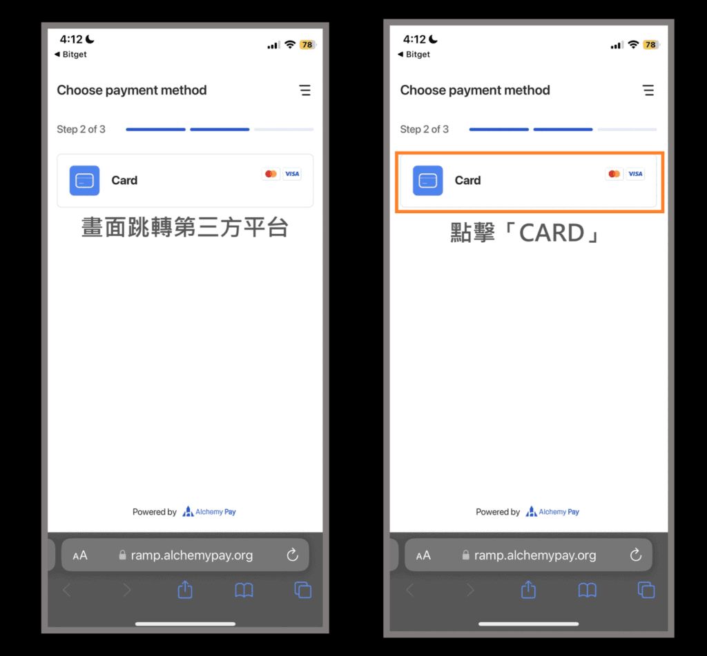 - 2.法币充值管道二:Bitget合作的第三方平台刷卡入金 —— 适合有魔法小卡,不在意高汇差的族群