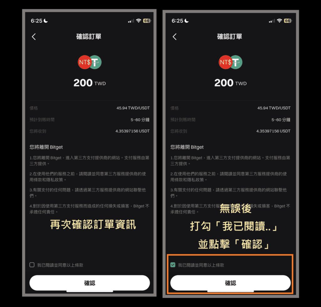 如果是加密货币钱包之间的转帐,就不受义务约束啦,我们只要先在MAX、币托(或任何支持台币入金)的交易所用台币购买好稳定币,之后再通过区块链转到Bitget交易所即可。