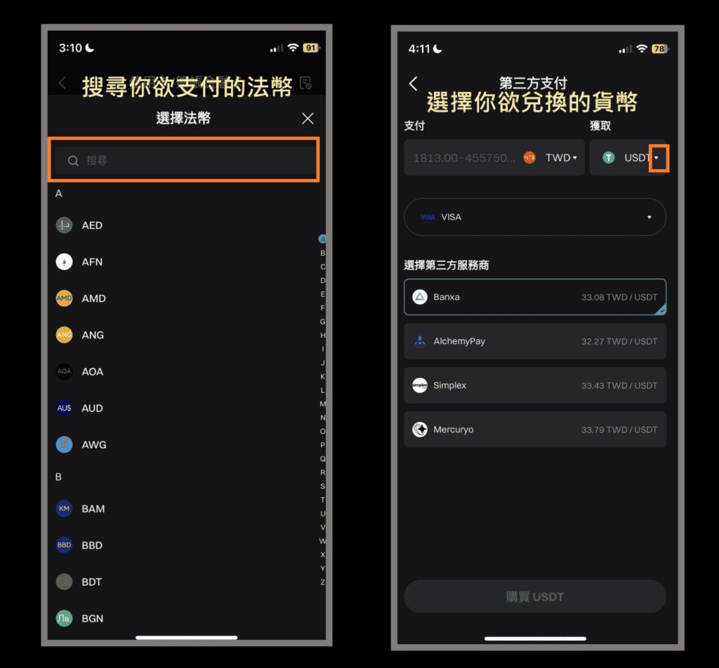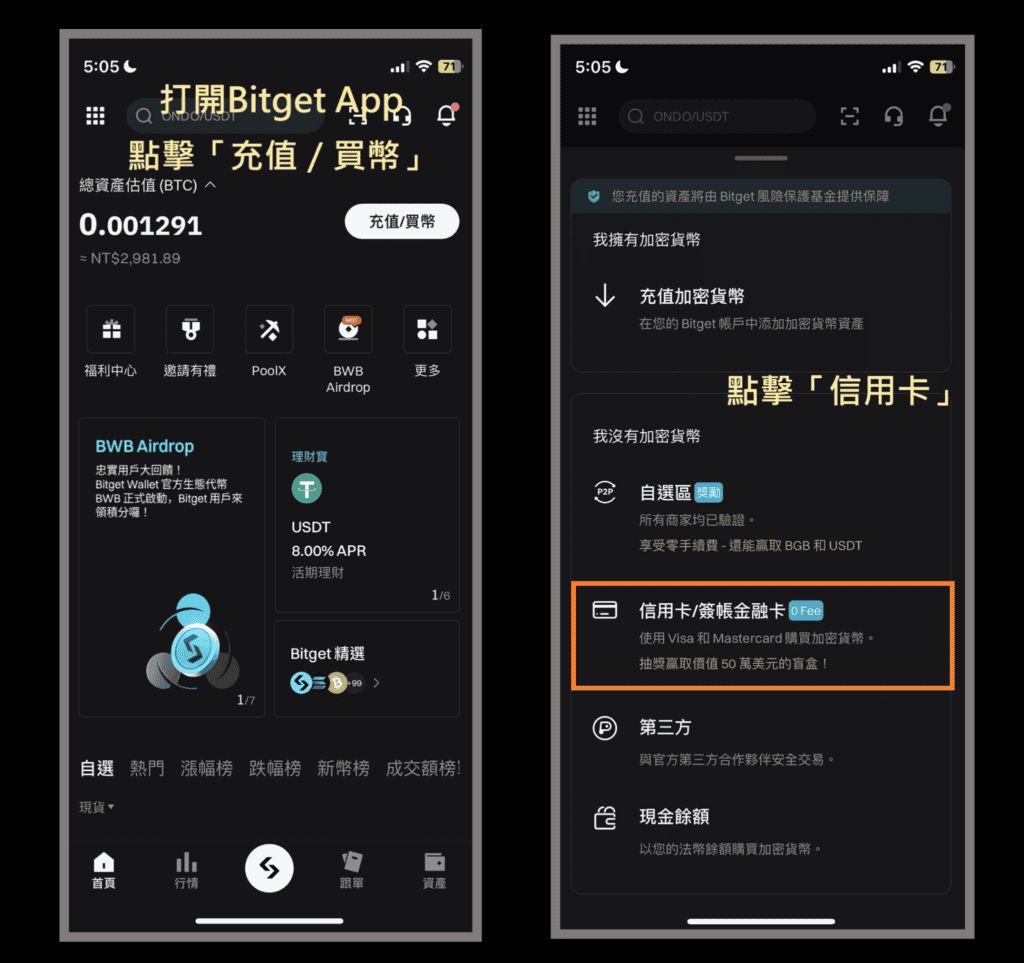 Bitget其实挺方便,可以自由选择刷卡的货币单位(同样、台币等),也可以选择刷卡付费后转换的虚拟货币(比特币、USDT等)。