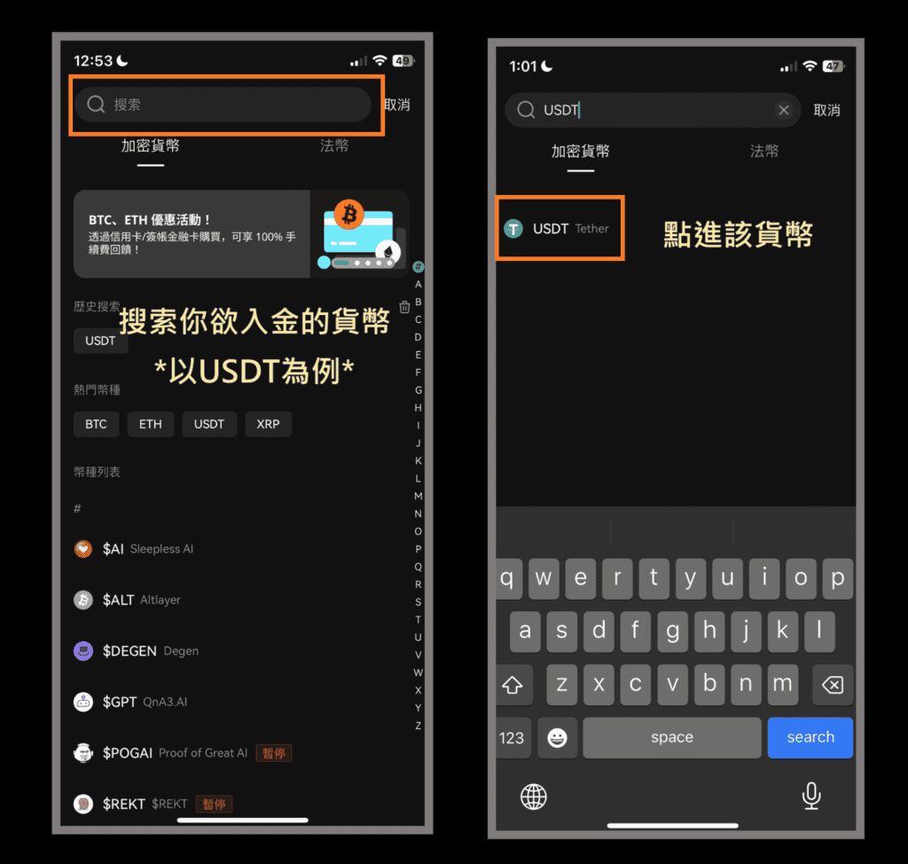 这个方法很适合小白入门,毕竟一开始大家可能注册的交易所大多都是支持台币入金的,所以大部分朋友都应该拥有#站中继(可台币入金的交易所)帐号。