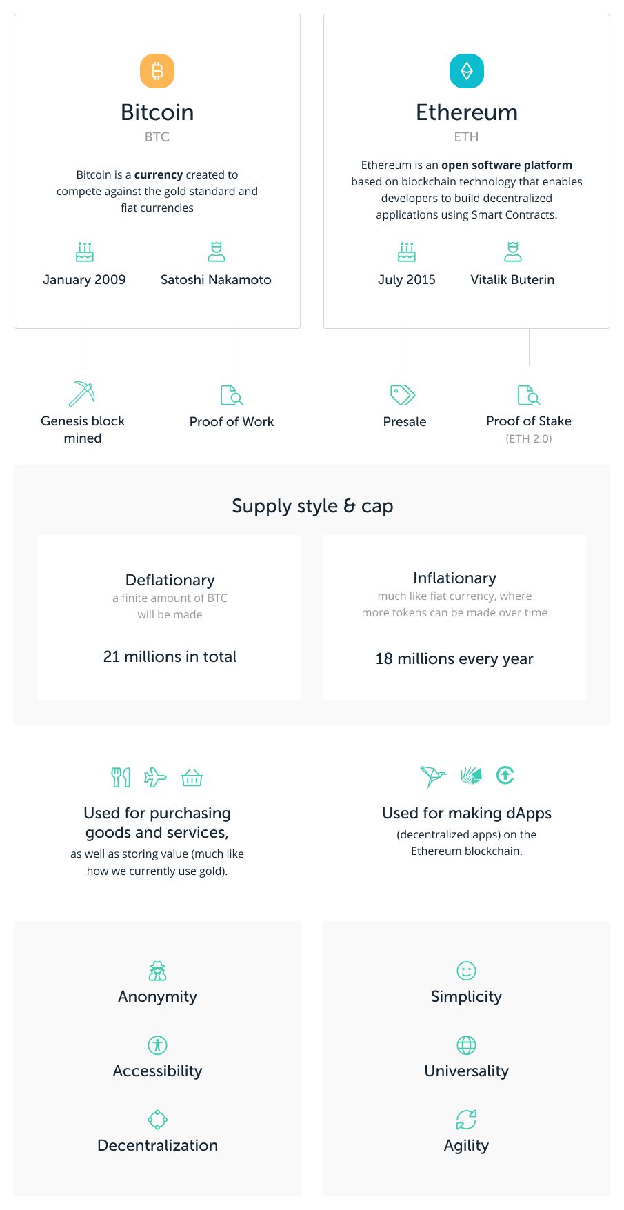 以太坊和比特币之间有几个关键的区别。首先,它们的共识机制不同。比特币采用的是 PoW 共识机制,而以太坊采用的是 PoS 共识机制。其次,以太坊能够执行智能合约,而比特币则不能。除此之外,这两个区块链的运作方式和用途也存在诸多差异。