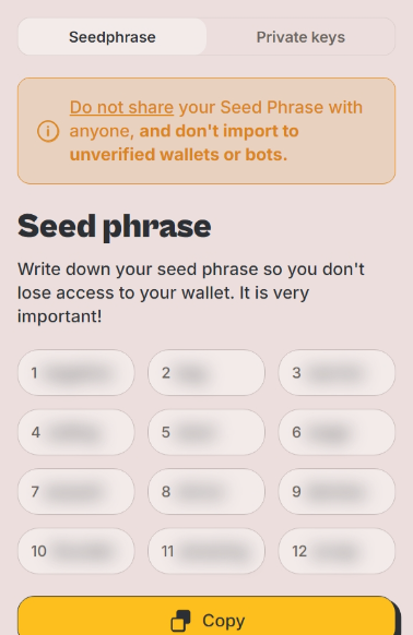 - HOT Wallet与您的Telegram账户无关。如果有人从其他设备登录您的Telegram,仍然需要您的种子短语才能访问钱包。