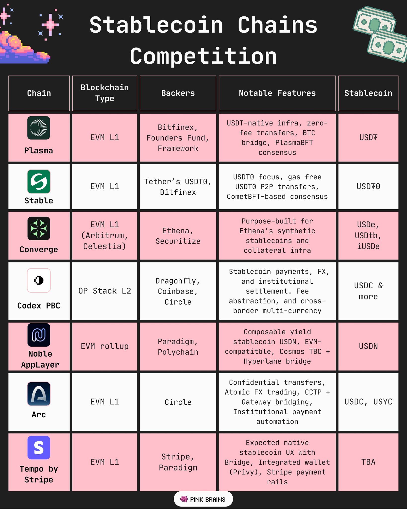 上述所有稳定币原生链都展现出一些共同的特征: