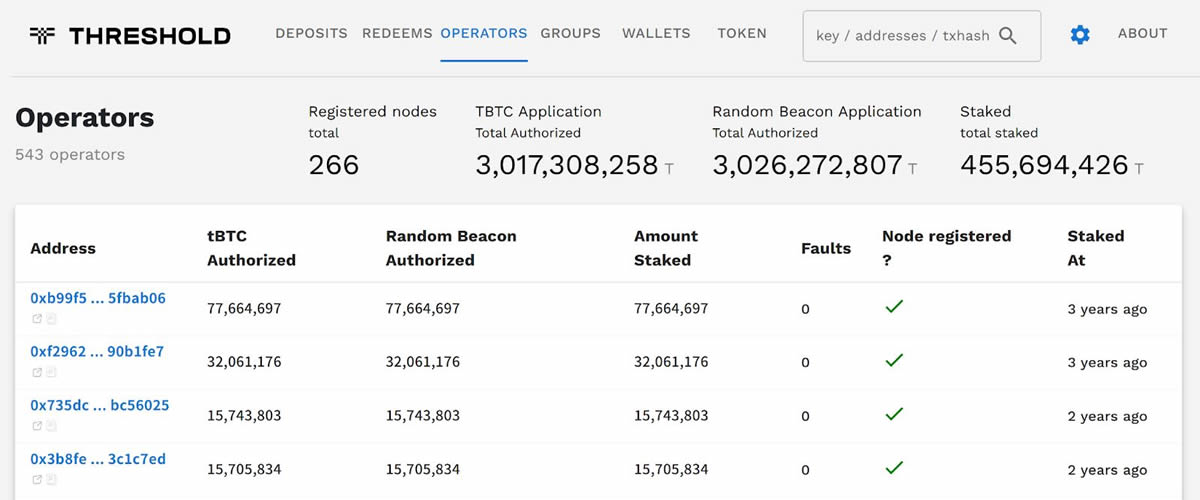 相关链上数据可看官方提供的https://tbtcscan.com/operators