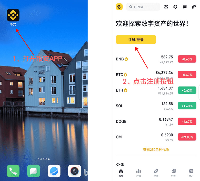 1. 打开币安app(官方注册 官方下载)首页,点击左上角币安小图标。
