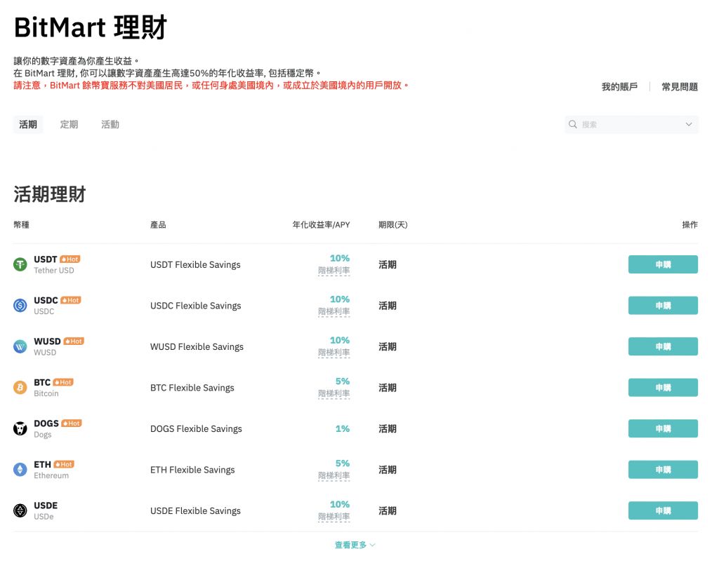 | 加密货币提领费用 | USDT:1~4.1 (USDT) USDC:1~4.1(USDC) BTC:0.00001~0.001(BTC) ETH:0.0000004~0.002(ETH) |