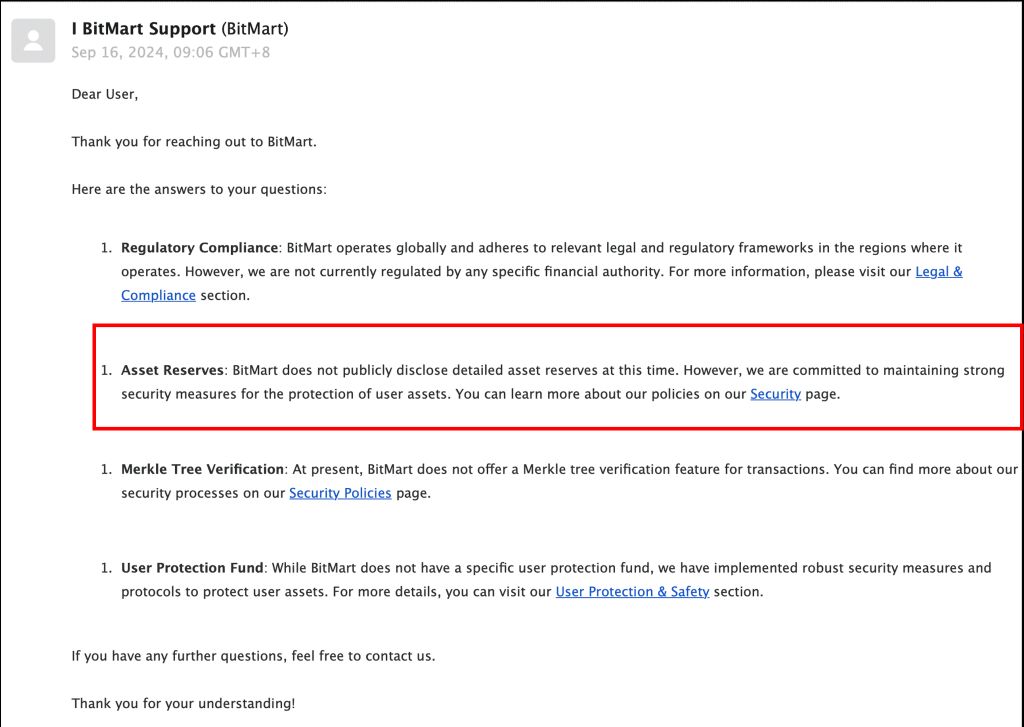- BitMart 没有公开资产储备证明