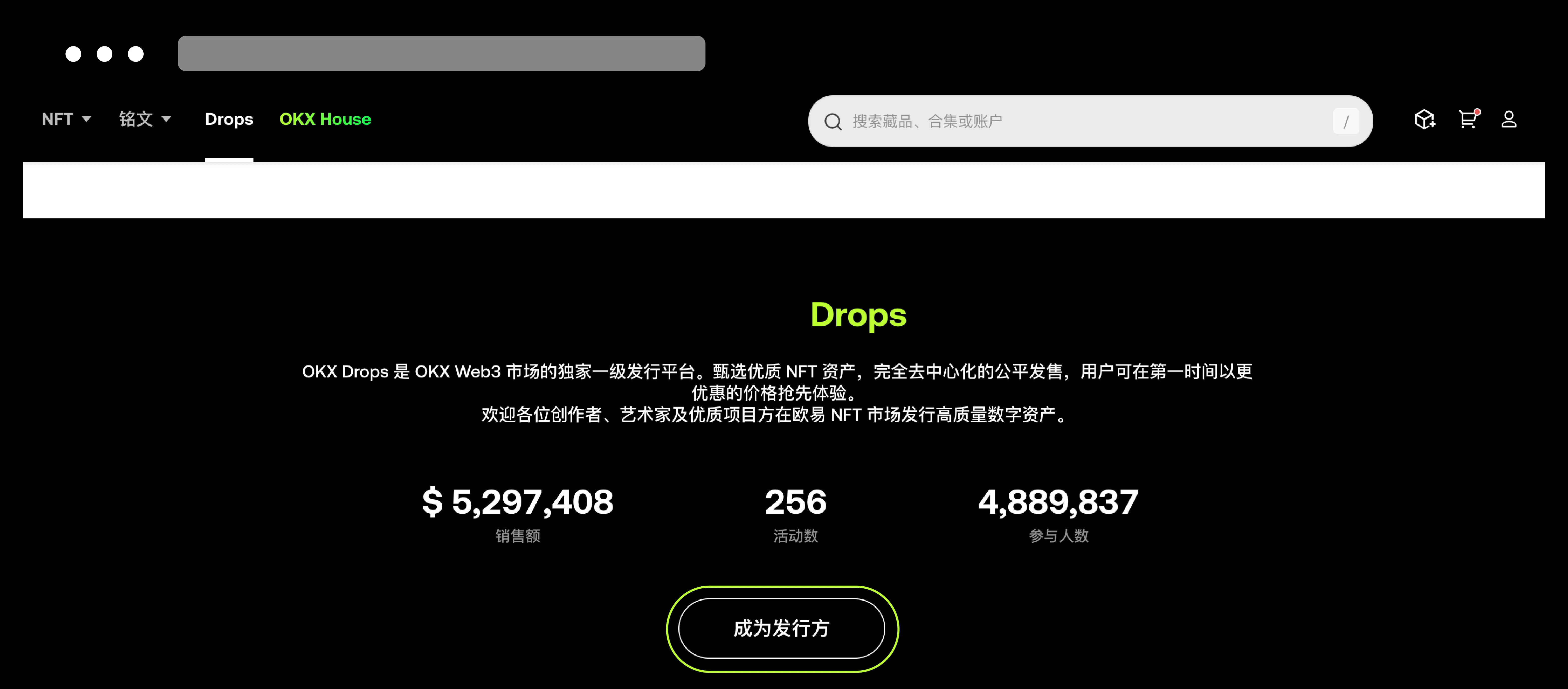 OKX Drops 旨在共同发起 NFT 项目发行活动,帮助用户第一时间发现并参与优质 NFT 首发项目。
