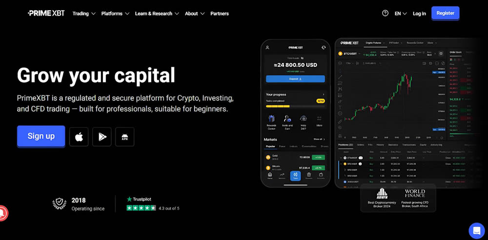 - PrimeXBT:在多个金融市场进行交易的最佳交易所。