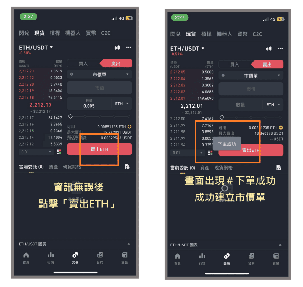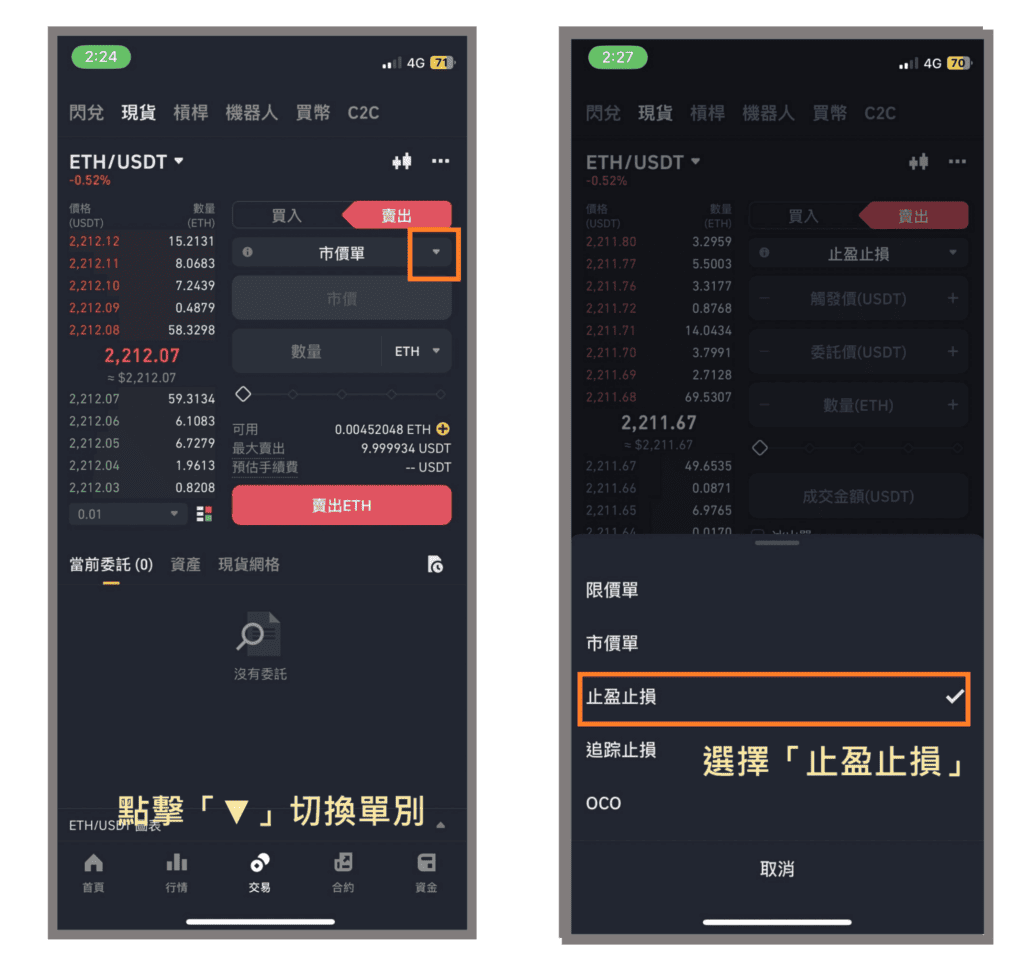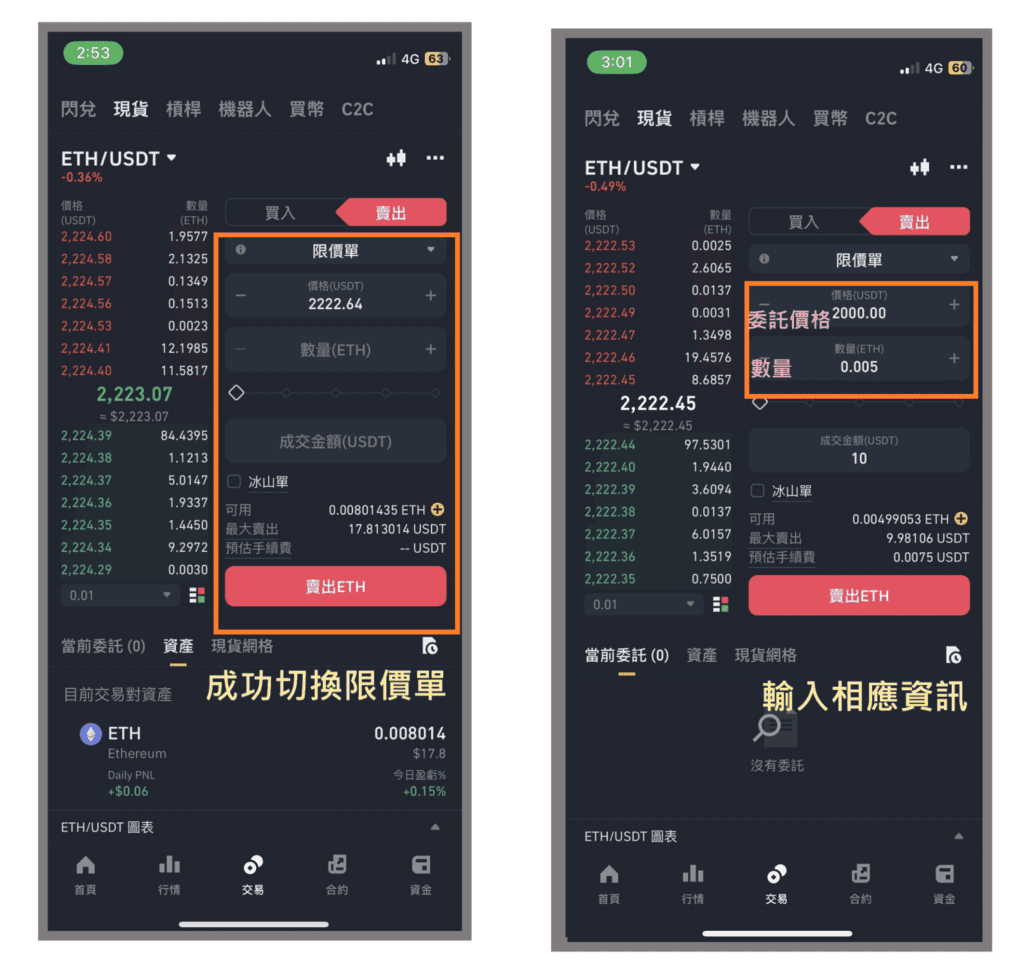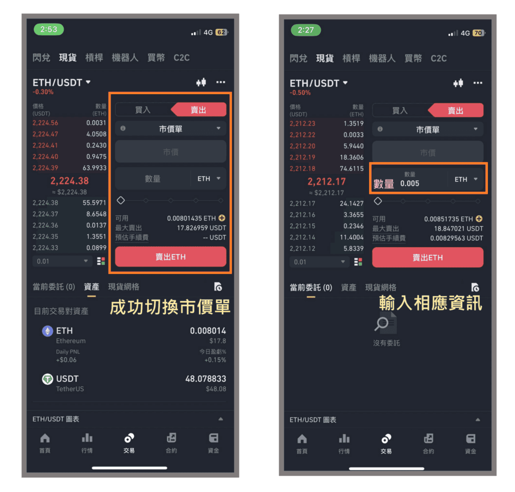 - 币安交易所现货市场卖出以太币教学:手机App图文解说