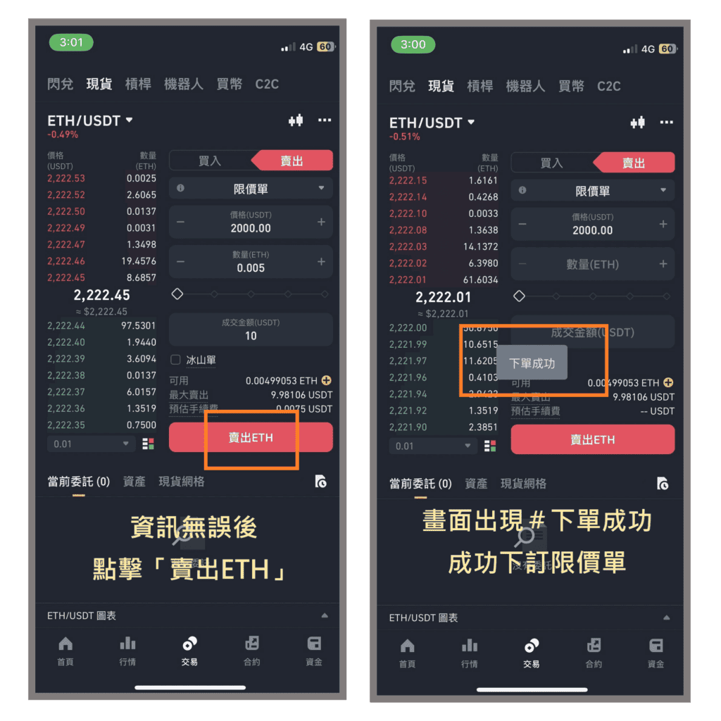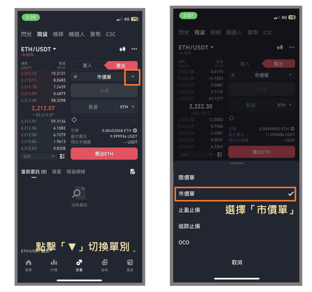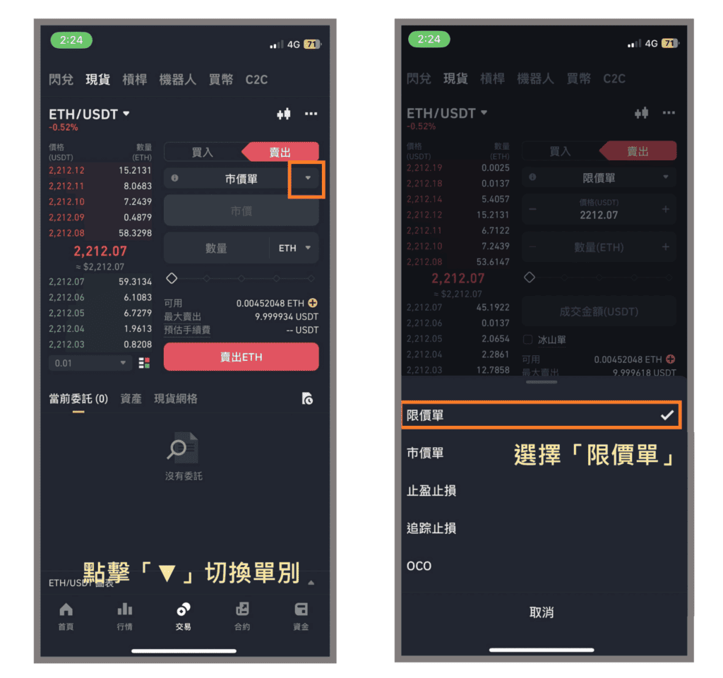 币安交易所现货市场卖出以太币教学:手机App图文解说