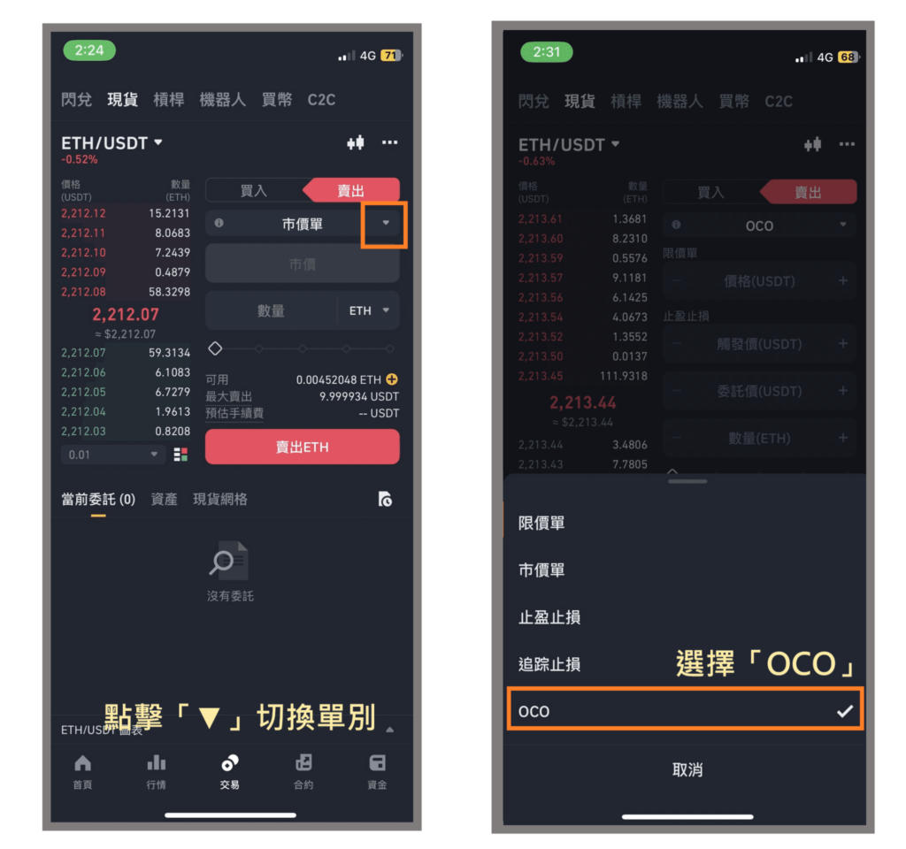 币安交易所现货市场是如何卖出以太币的呢?币安现货如何使用限价单、市价单、止盈止损单、追踪止损单、OCO单的呢?