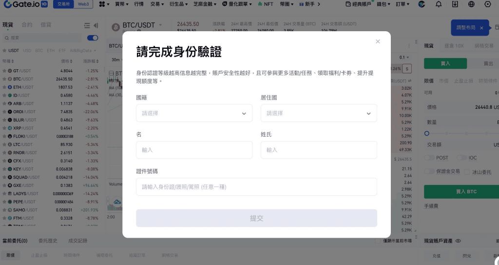 除了大同小异的安全措施如2FA验证、防钓鱼网站等,Gate.io 在账户安全等级不够时,会在操作页面进行多次提示,直到用户完成KYC和验证器绑定。