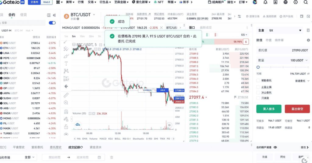 - Gate.io 的现货和合约交易流动性很好,能够迅速撮合成交,交易介面设计得相当人性化,操作起来比较便捷。