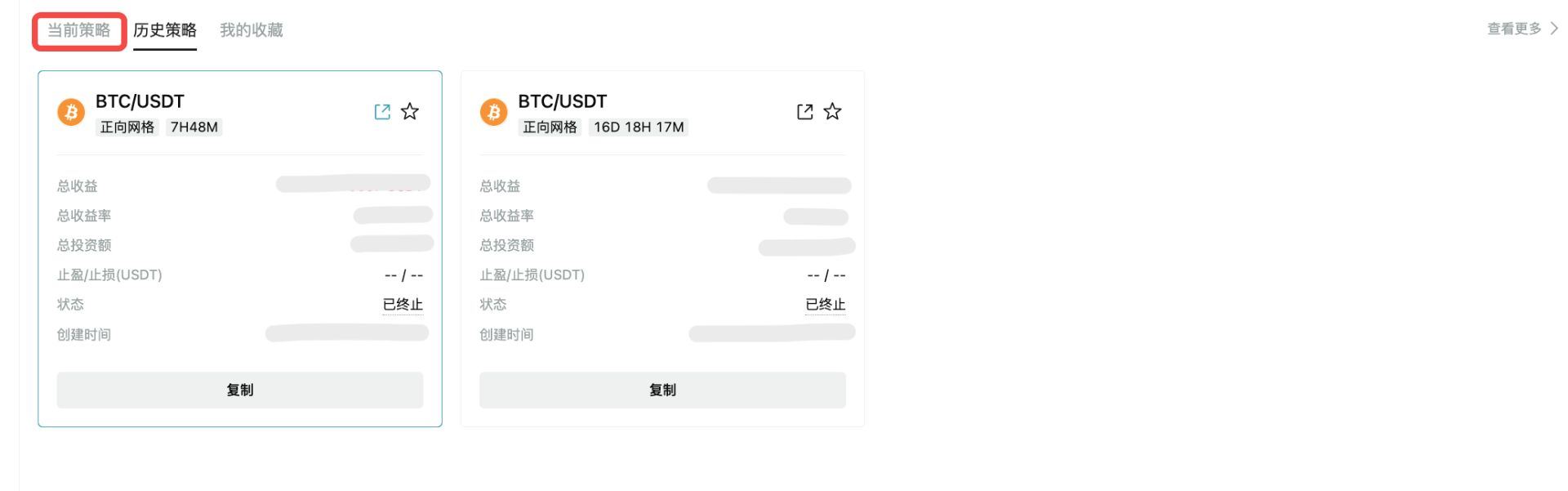 针对已创建成功的网格策略,您可在网格交易页面下方进行查看。并可以进行【查看详情】或【终止策略】的操作。