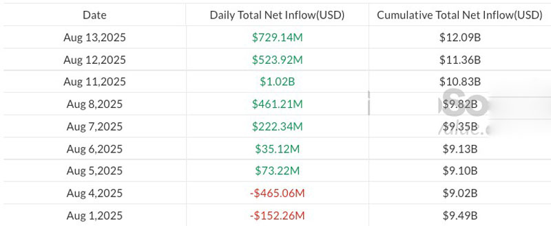 根据CoinGecko数据,此次最新流入仅比7月16日创下的上一纪录7.27亿美元高出0.5%,当时该加密资产交易价格约为3150美元。