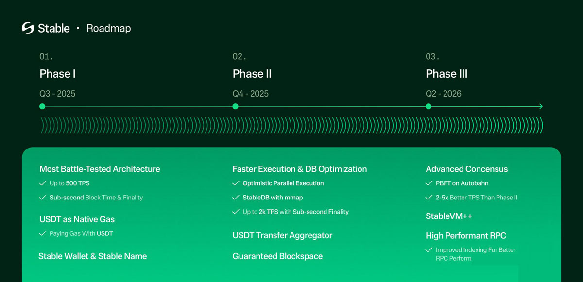 对于企业客户,Stable 计划推出“保证区块空间”(Guaranteed Blockspace)功能,这是一种专门分配的交易容量,无论网络拥堵情况如何,都能确保稳定的吞吐量,类似于高速公路的公交专用道。此外,保密转账功能也正在开发中,用于隐藏交易金额,同时仍满足反洗钱 (AML) 和KYC合规要求。展望未来,目前用 Go 语言编写的执行引擎将被一个名为 StableVM++ 的 C++ 版本所取代。此次升级将实现更低级别的内存控制和性能优化,目标是将执行速度提高多达六倍。