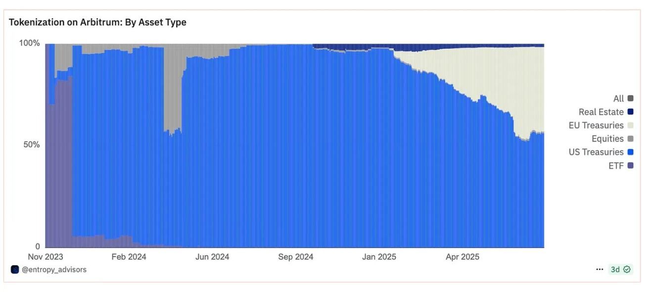 这些资产凸显了股票和指数的潜力,但它们在 Arbitrum 中的占比仍较低。