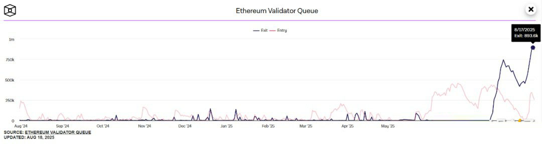 根据 The Block 数据,目前退出队列约有 67 万枚 ETH(约 31 亿美元),远超新质押需求,预计处理时间接近 12 天,其中价格上涨背景下杠杆质押循环解除、LST 脱锚风险以及套利机会,是推动大量 ETH 解质押的主要原因,所以 Lido、EthFi 和 Coinbase 为主要退出来源。